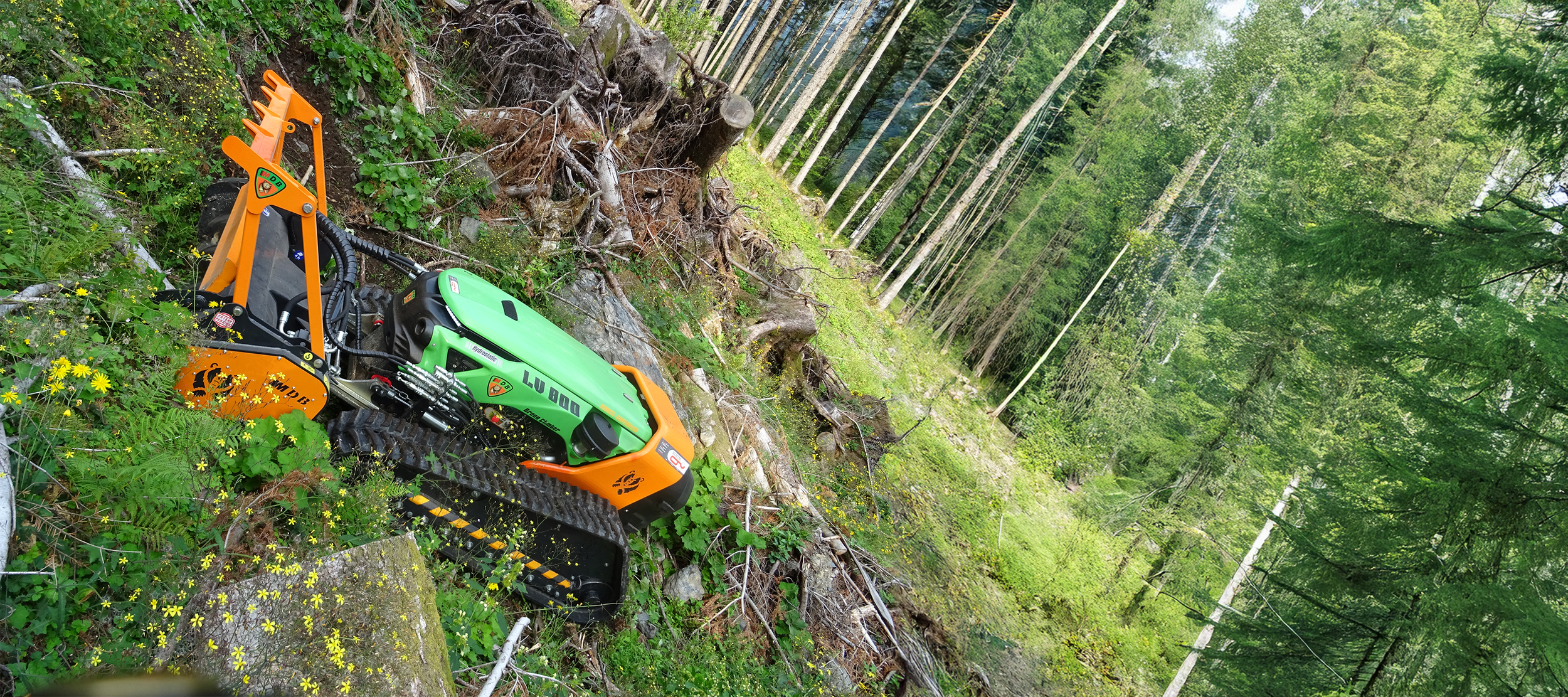 With its extendable undercarriage tracks, lightweight design, and powerful grip, it effortlessly handles gradients up to 60 degrees in any direction — delivering fast, precise, and above all, safe results in environments where traditional mowing is too risky.