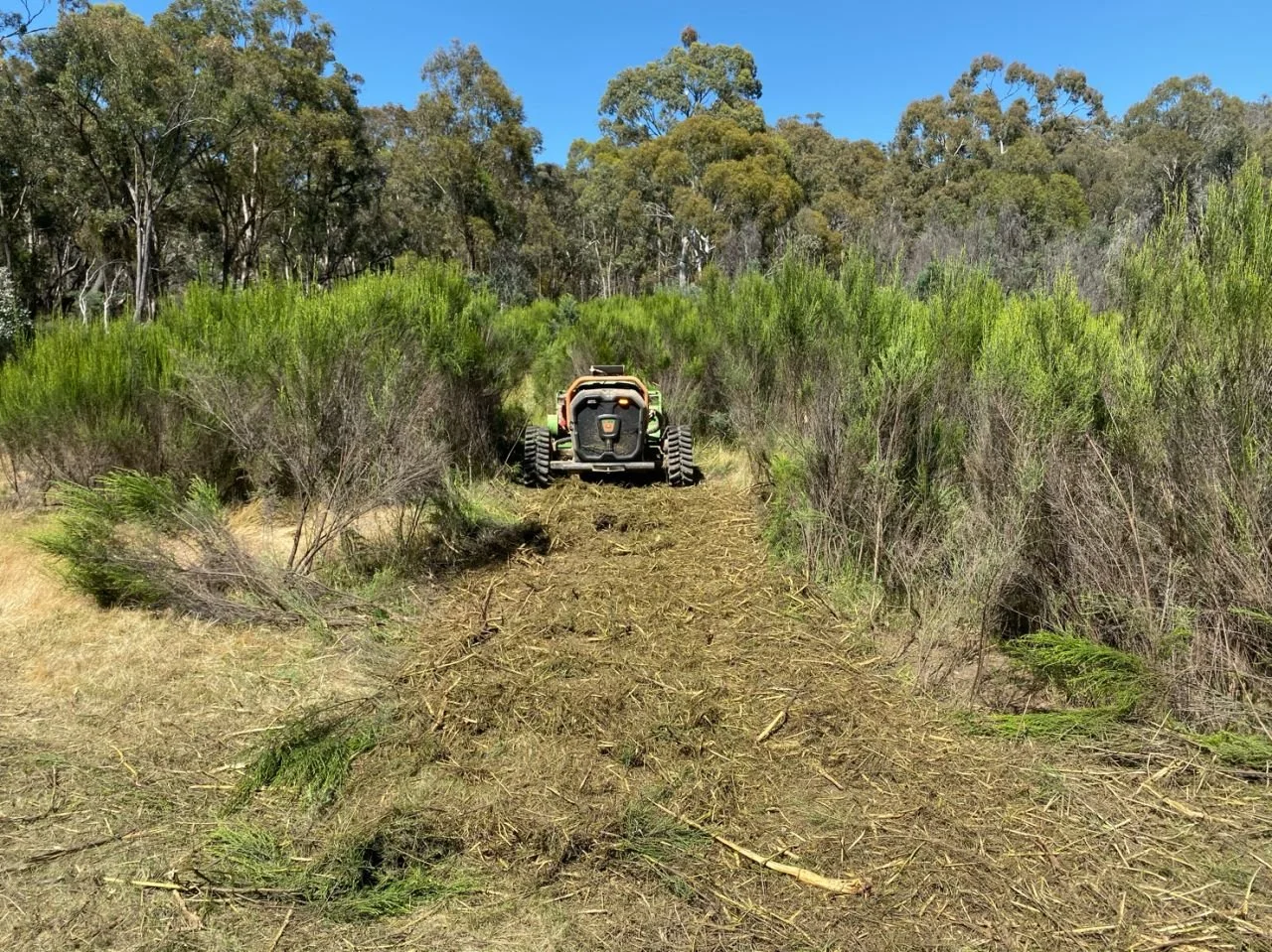 When clearing the fire breaks Angus was able to get the Green Climber into the challenging locations to clear vegetation that is a fire hazard. Challenging places to get to are steep hillsides with scrub growing on them, creek banks are also a steep and challenging place to mow – but with the Green Climbers low centre of gravity they are able to operate on slopes up to 60° without rolling! Having the ability to operate on slopes this steep in any direction allows the Green Climber to access previously inaccessible areas!